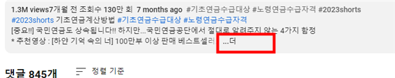 2)유튜브 아래 구독버튼 옆 더보기 클릭