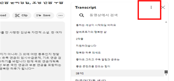4)거기서 3점 클릭 후 타임스탬프 전환 누르면 모든 자막이 나옵니다.